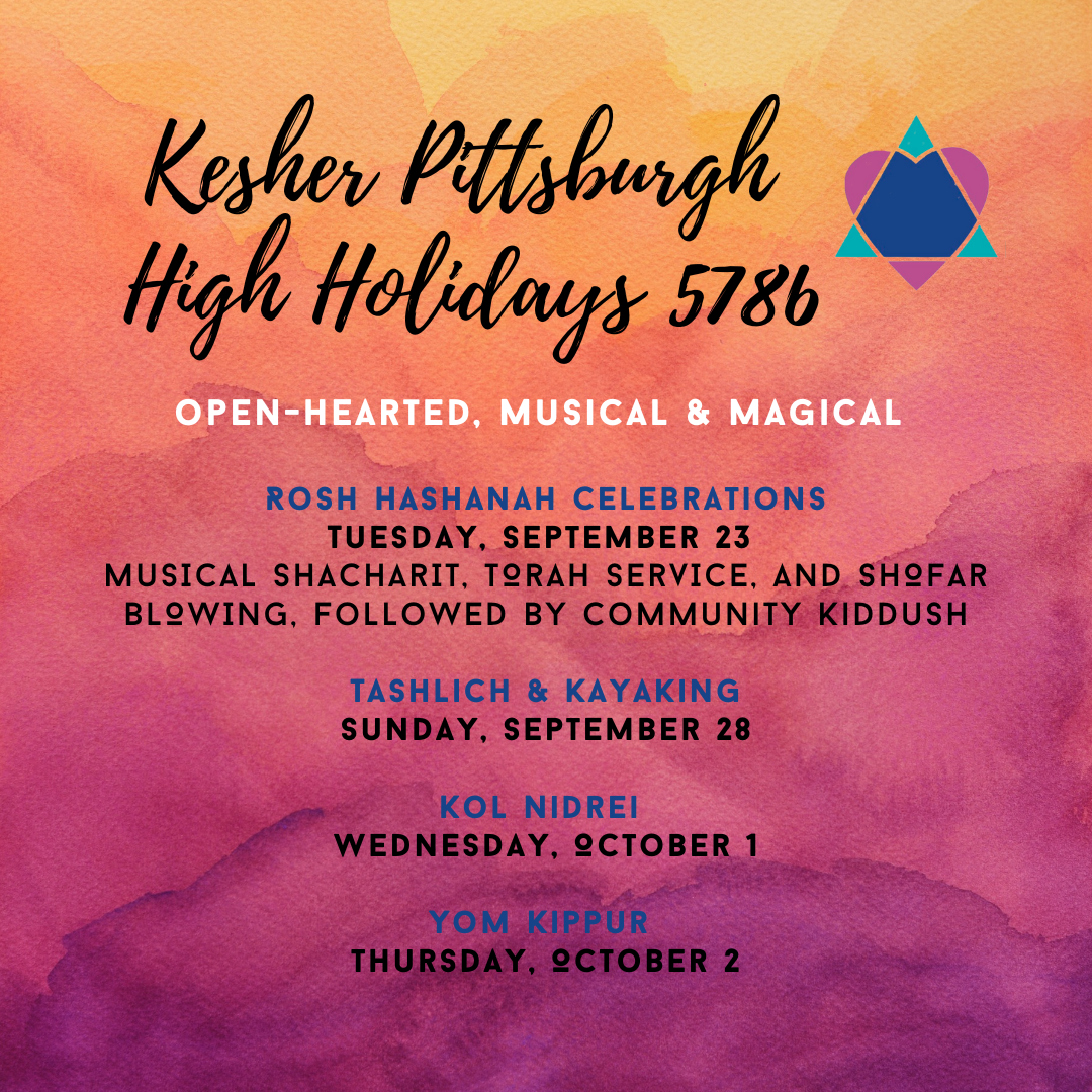 Yom Kippur day will offer a variety of modalities through which we can reflect, connect and make teshuvah (return). 8:45am Embodied Practice 10:00am - 12:30pm Kesher Pittsburgh Yom Kippur morning will include opportunities for reflection and teshuvah nested inside of a Kesher-style shacharit (morning) service. Options will include an adapted Seventh Generation program, a reflective […]